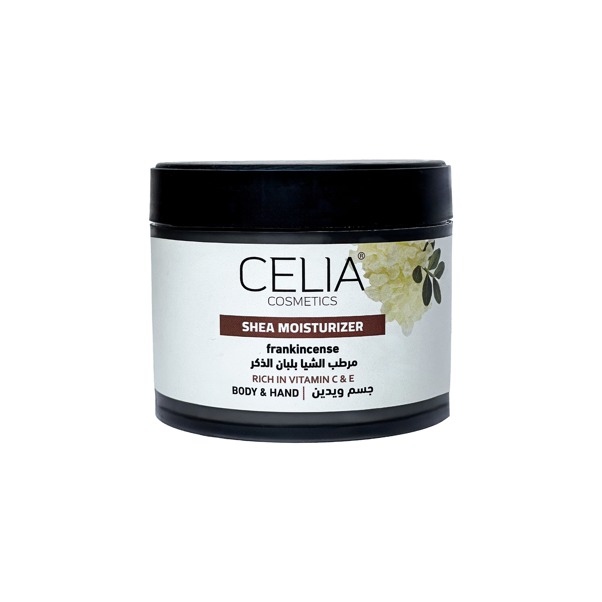 - مرطب للجسم من ماركة سيليا، زبدة الشيا الافريقية العضوية يرطب البشرة بعمق وفعالية، يزيد نعومة البشرة الجافة ليمنحها الترطيب والنضارة برائحة المسك الابيض والباودر تدوم طويلاً.